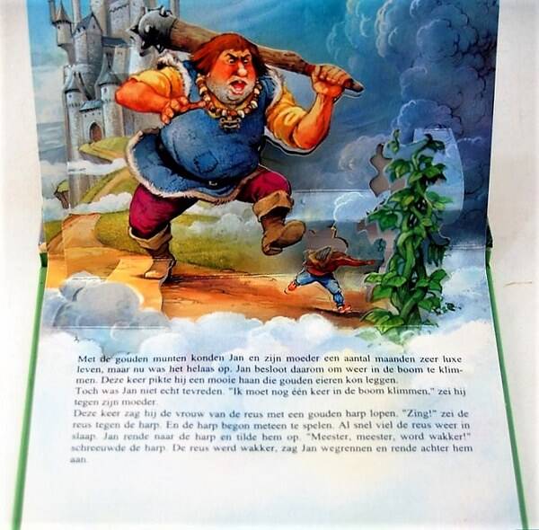 Jan en de betoverde bonen.Sprookjes pop-up boek - illustraties: John Patience.Bsn Oegstgeest 2000, 5 pop-ups. ca. 19,5 x 14,5 cm. In zeer goede staat.