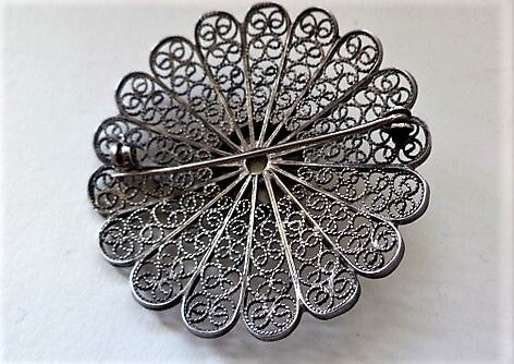 Vervaardigd uit hoogwaardig zilver (waarschijnlijk 835 of 925 gehalte) met zeer fijn en gedetailleerd filigrainwerk in rozetvorm.