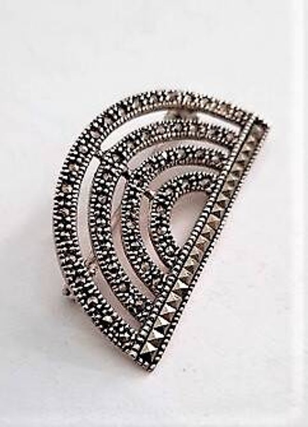 Prachtige zilveren Art Deco design broche met markasieten (7684-4495)