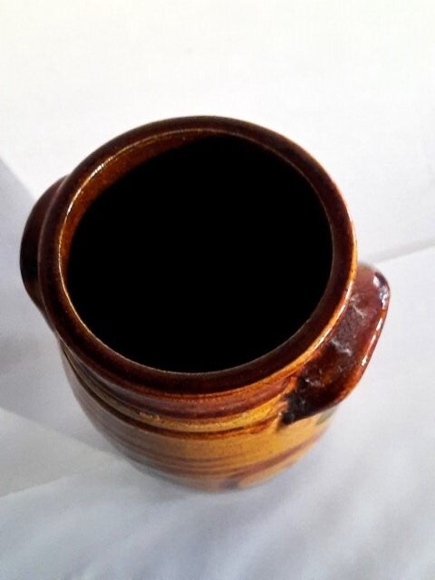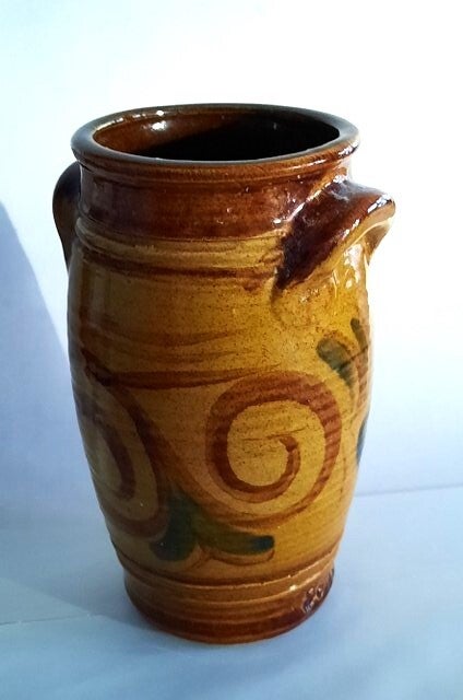 De vaas heeft twee kleine oortjes aan de bovenzijde.