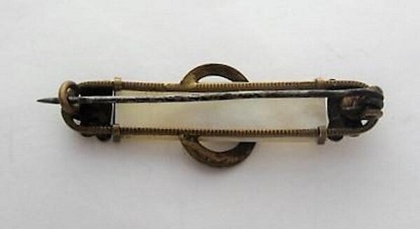 Aparte antieke broche parelmoer en messing met gespje (7827-4570)