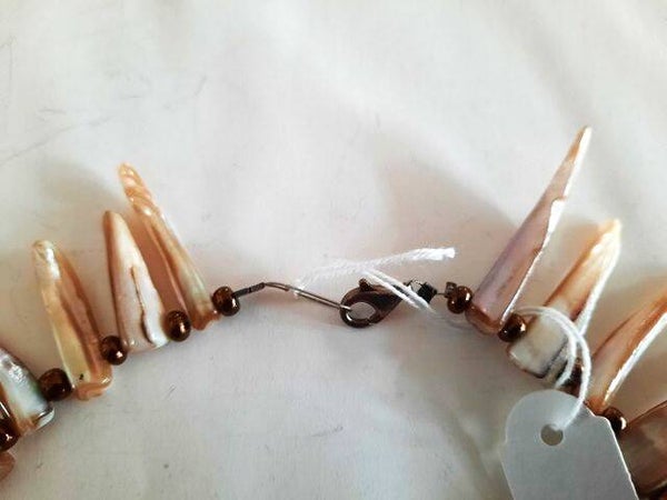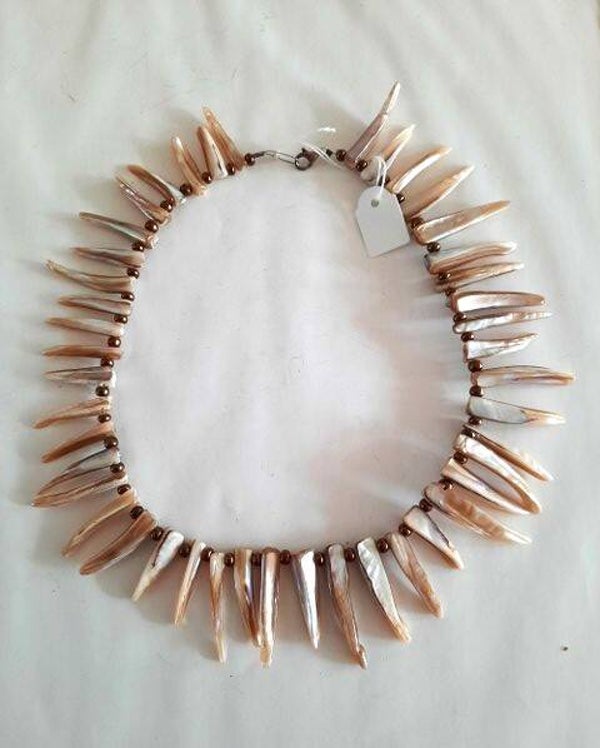 Prachtige handgemaakte Parelmoer ketting met schelptanden (6917)