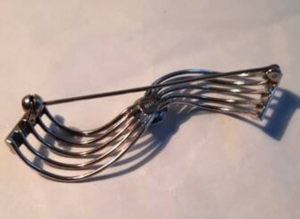 Zeer aparte en stijlvolle zilveren broche in de vorm van een open, gestileerde strik.