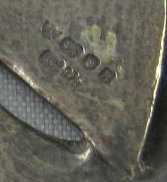 Volledig gekeurd met het meesterteken 'AN' in schild, de lopende leeuw (Sterling), het stadsteken van Londen (luipaardkop) en de jaarletter 'N' voor 1987.
