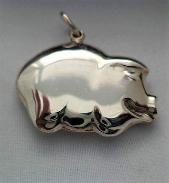 Deze grappige vintage hanger in de vorm van een varkentje is een echte blikvanger!