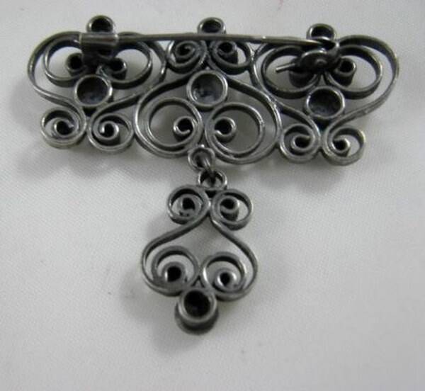 Schitterende, karaktervolle antieke zilveren broche met een verfijnd en gedetailleerd ontwerp.