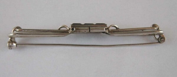 Stijlzuivere en elegante zilveren staafbroche van de bekende Duitse designer Theodore Klotz (TEKA) uit de goudstad Pforzheim.