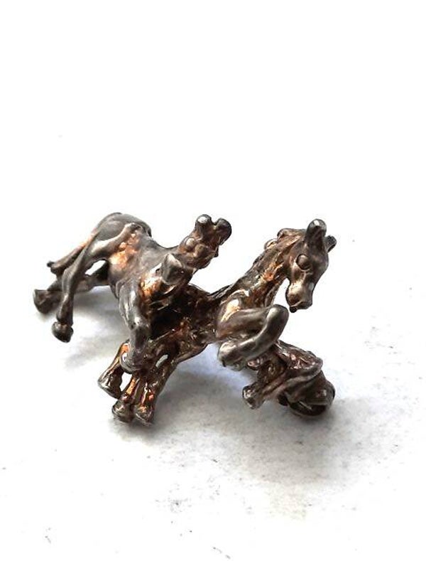Zeer gedetailleerde vintage broche van twee rennende paarden.