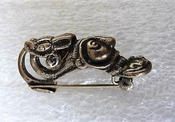 Mythsch figuur met paarden helm, antieke zilveren native broche (5917-1145)