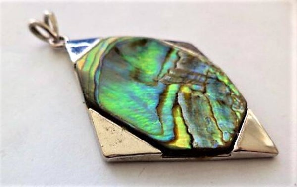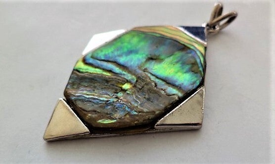 De hanger is ingelegd met een grote, natuurlijke Abalone schelp (ook wel Paua genoemd).