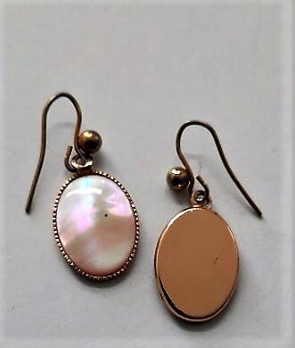 Prachtige goudkleurige oorhangers, ingelegd met ovaal parelmoer.