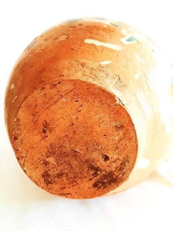 Rustieke Hongaarse aardewerk kruik, Slip-Decoratie. Uniek! (5185-15)