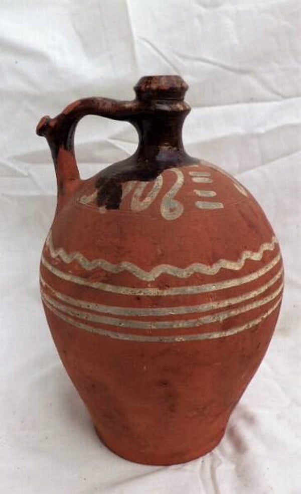 Antieke Hongaarse Terracotta Waterkruik (Korsó) (56