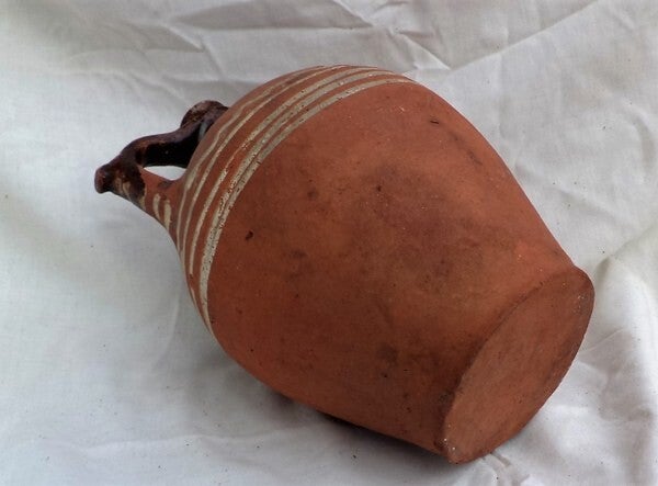 Handgedraaid terracotta met een karakteristiek bruin geglazuurde hals en oor.