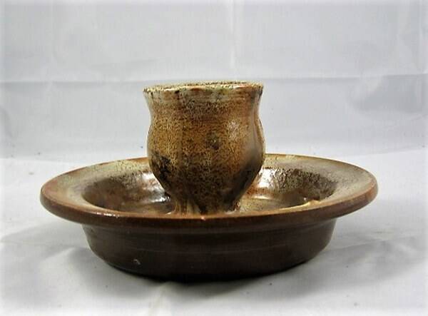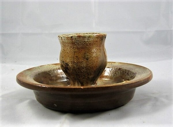 Prachtige, handgemaakte keramische kandelaar van de bekende Pottenbakkerij De Koppenjan uit Gersloot (Friesland).