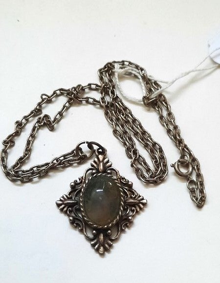 Mooie zilverkleurige hanger Groene Agaat en ketting (5671)