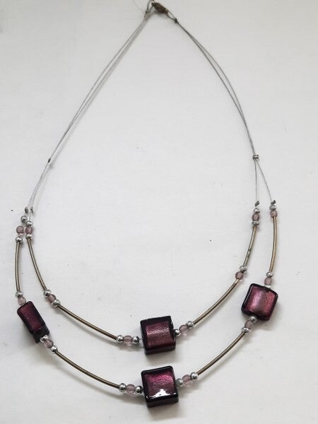 Prachtige Design ketting, paarse blokjes & messing (6917)