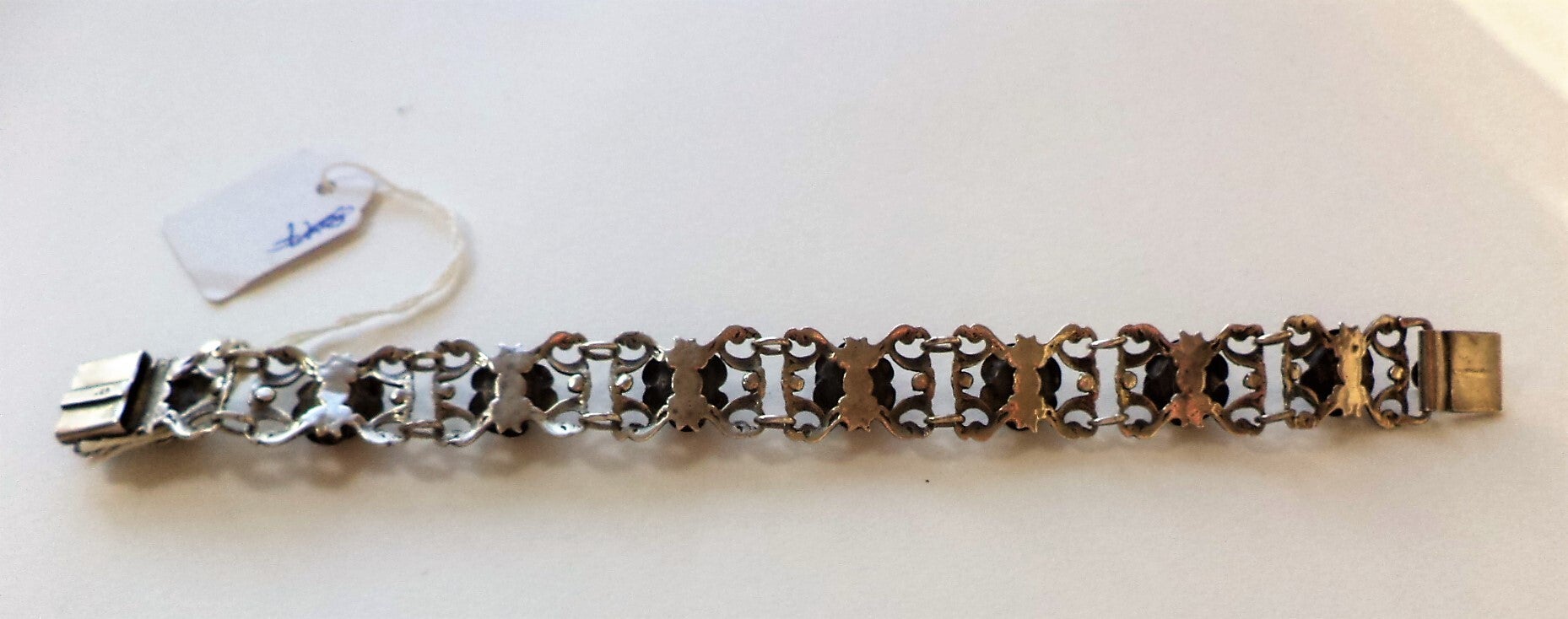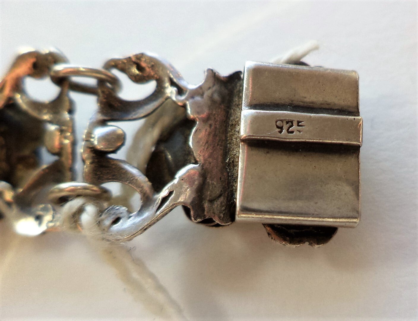 Prachtige vintage schakelarmband in een floraal thema, uitgevoerd in sterling zilver.