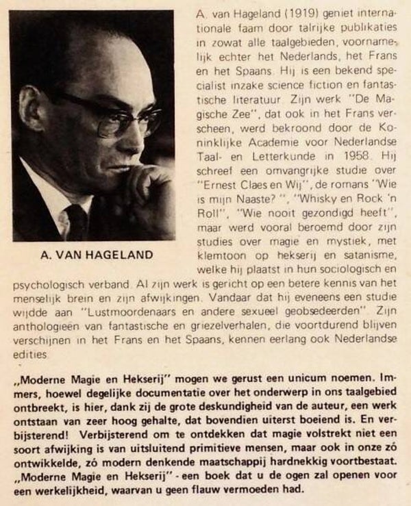 SA. van Hageland - Moderne Magie en Hekserij.Dit mogen weg gerust een unicum noemen.Een boek dat u de ogen zal openen voor een werkelijkheid, waarvan u geen flauw vermoeden had.Rotterdam 1974. 232p., ill. Softcover. In goede staat.