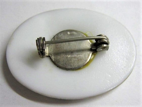 Mooie bloemenbroche op wit ovaal glas (6067-1524)