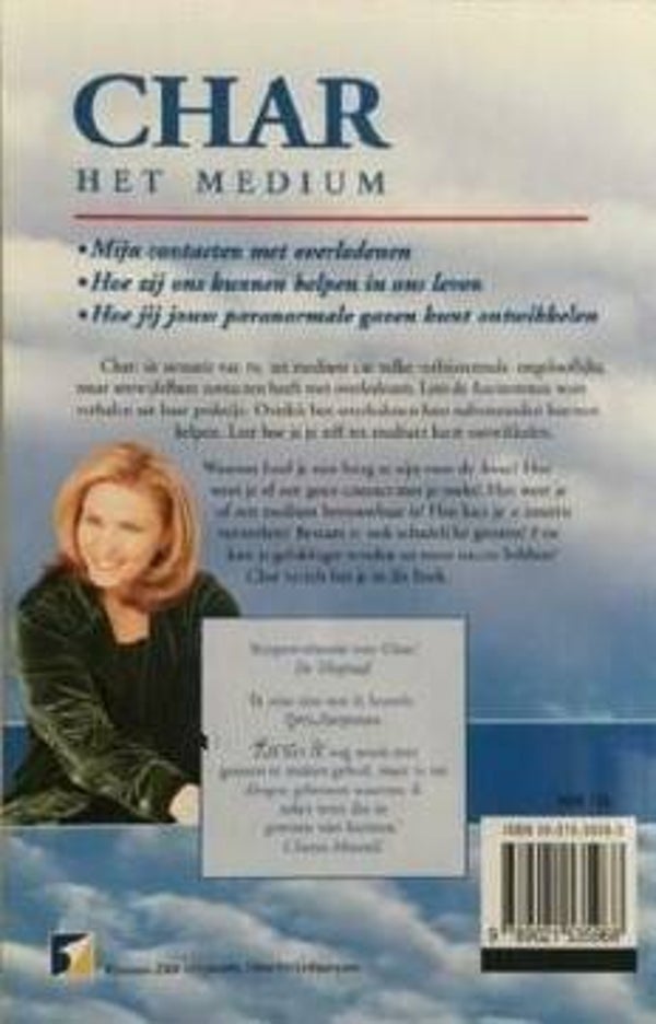 Char: de sensatie van tv, het medium dat zulke verbijsterende, ongelooflijke, maar ontwijfelbare contacten heeft met overledenen. Lees de fascinerende ware verhalen uit haar praktijk. Ontdek hoe overledenen hun nabestaanden kunnen helpen. Leer hoe je je zelf tot medium kunt ontwikkelen.