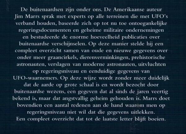 De Amerikaanse auteur Jini Marrs sprak met experts op alle terreinen die met UFO's verband houden, baseerde zich op tot nu toe ontoegankelijke regeringsdocumenten en geheime militaire ondernemingen en bestudeerde de enorme hoeveelheid publicaties over buitenaardse verschijnselen.