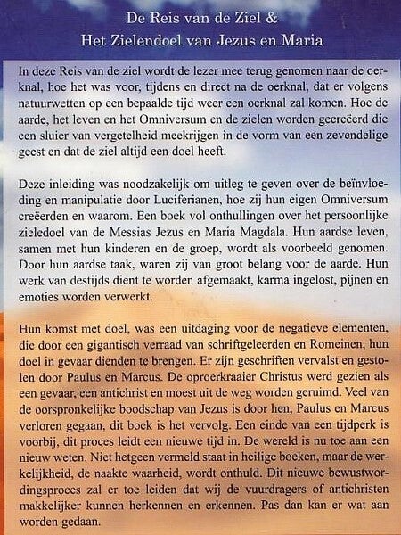In deze Reis van de ziel wordt de lezer terug genomen naar de oerknal , dat er volgens natuurwetten op een bepaalde tijd weer een oerknal zal komen.