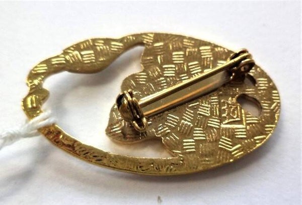 De broche is uitgevoerd in een elegante Art Nouveau-stijl met een deels opengewerkt (cut-work) ontwerp.