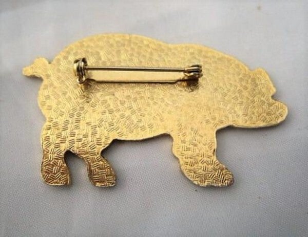 FISH Prachtig cloisonné emaille broche Varken. 22kt verguld (7905-4762)