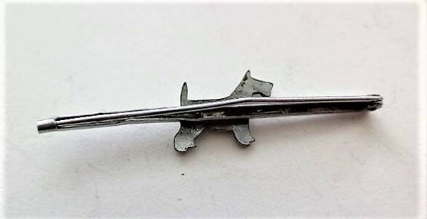 Voor de liefhebber van terriërs: een karakteristieke vintage staafbroche met een gedetailleerd hondje (Schotse Terriër of West Highland Terriër).