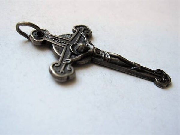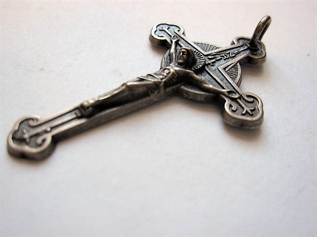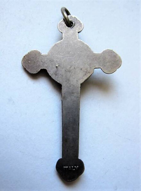 Dit stijlvolle religieuze object is een klassiek voorbeeld van Italiaans vakmanschap en is ideaal als hanger voor een ketting of als onderdeel van een rozenkrans.