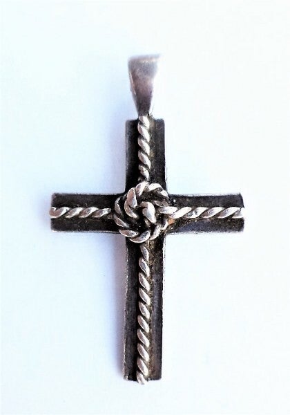 Stijlvol zilveren kruisje met een uniek gedraaid "touwwerk" ontwerp (rope design).
