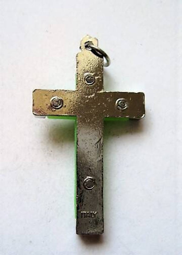 Mooi lichtgevend groen kruisje, verzilverd Italy (8043)