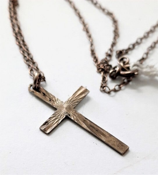 Het kruisje heeft een bijzonder 'sunray' of 'starburst' motief, waarbij de lijnen vanuit het midden stralen.