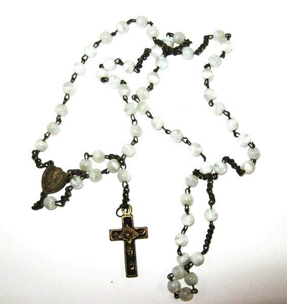 Dit klassieke gebedssnoer heeft een tijdloze uitstraling en verkeert in een mooie, gebruikte staat met een fraai patina op de metalen onderdelen.