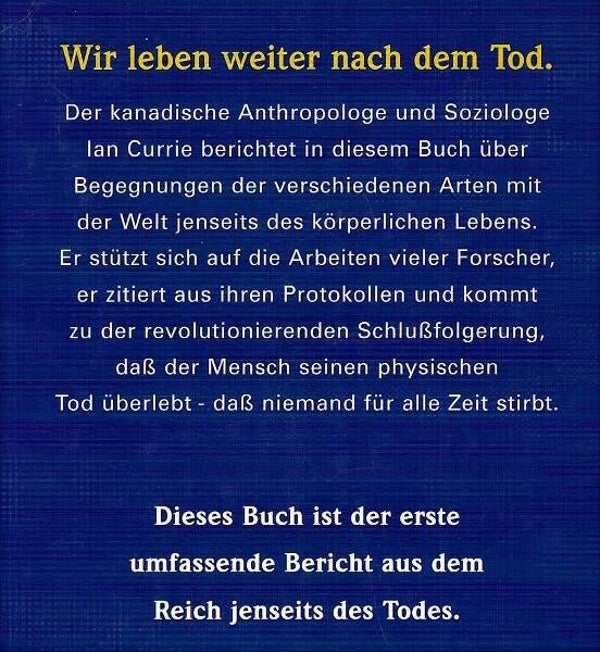 Der kanadische Anthropologe und Soziologe Ian Currie berichtet in diesem Buch über Begegnungen der verschiedenen Arten mit der Welt jenseits der Körperlichen Lebens.
