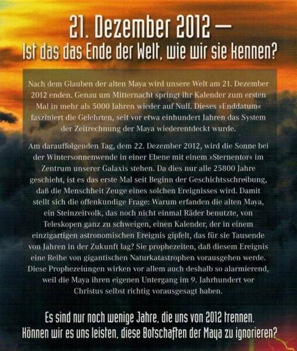 Nach dem Glauben der alten Maya wird unsere Welt am 21. Dezember 2012 enden.