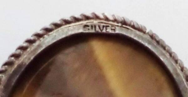 Prachtige zilveren art deco broche met grote tijgeroog (7234-3555)